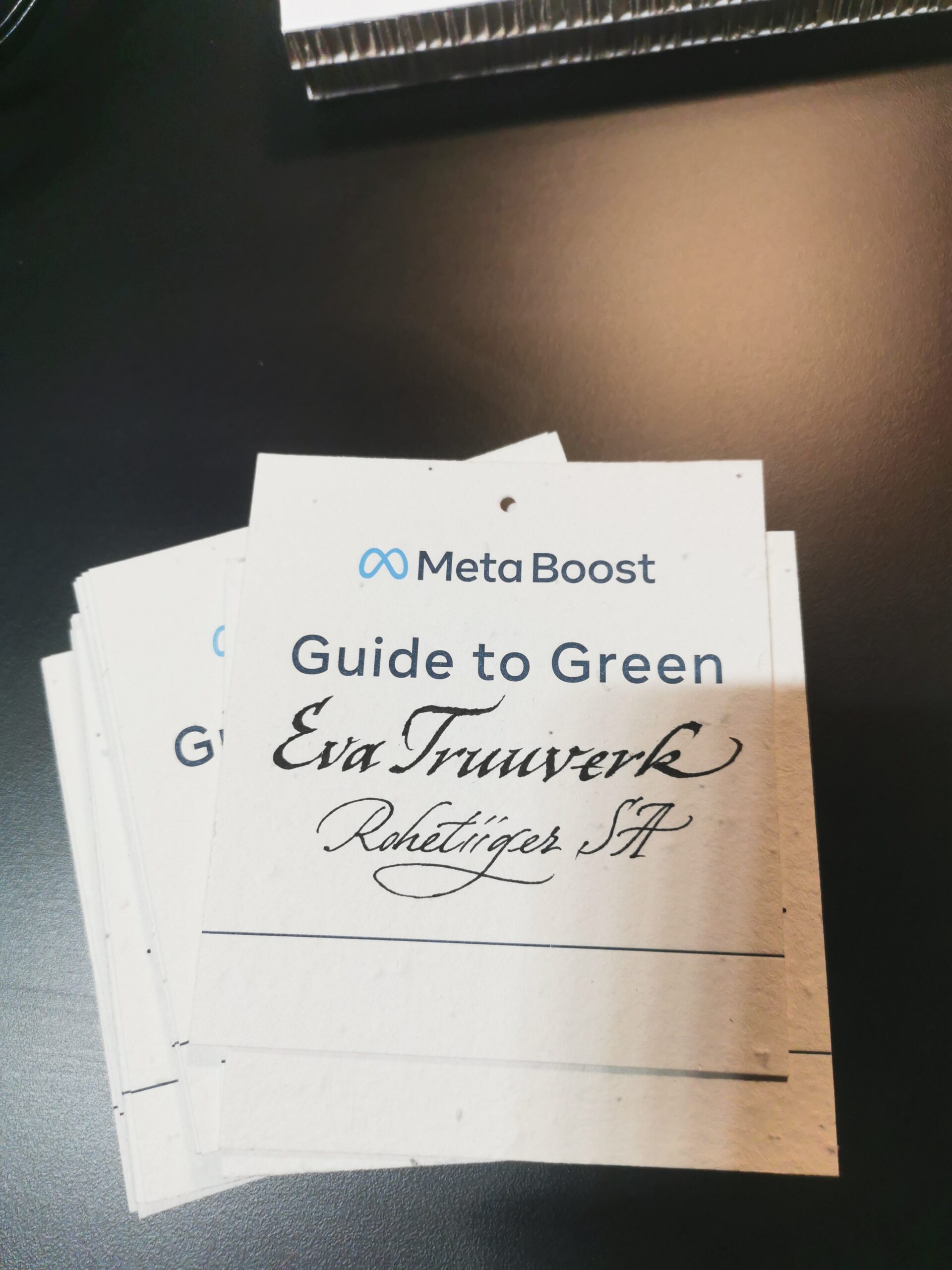 • Kaelakaardid ning reserveeringu sildid olid valmistatud seemnepaberist.Semnepaberist kaardid on tehtud 100% taaskasutatud paberist.  Seemnepaberi valmistamisel kasutatakse ümbertöödeldud paberimassi millele lisatakse seemneid ja vormitakse segust leht-lehe haaval seemnepaberid. Kus iganes kaardi lõplik sihtpunkt ka ei oleks, võib saaja paberi potti või peenrasse istutada ning taimede sirgumise üle rõõmustada.